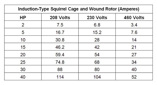 15. Refer to the figure above. What is the total load a feeder serving four 2hp motors, three 5hp motors, one 15hp motor, and one 25hp motor? All motors are 208V.